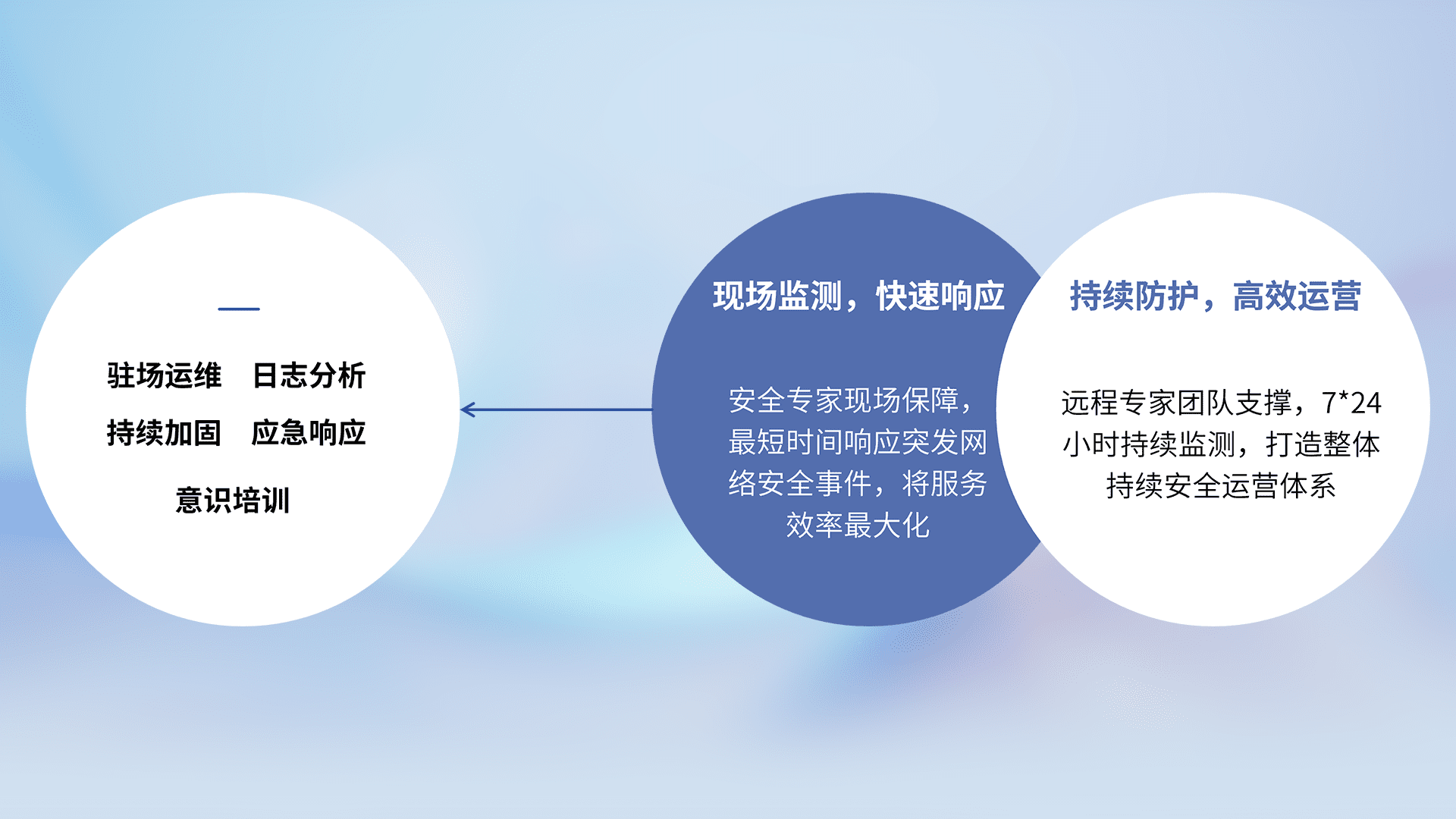 针对客户行业特性,,,,提供专属的一站式安全管理服务,,帮助客户全面感知网络空间威胁,,,,通过安全专家的线上、、、线下防护支持,,实现风险闭环,,将安全保障常态化,,为客户打造常态化安全运维运营服务。。。。